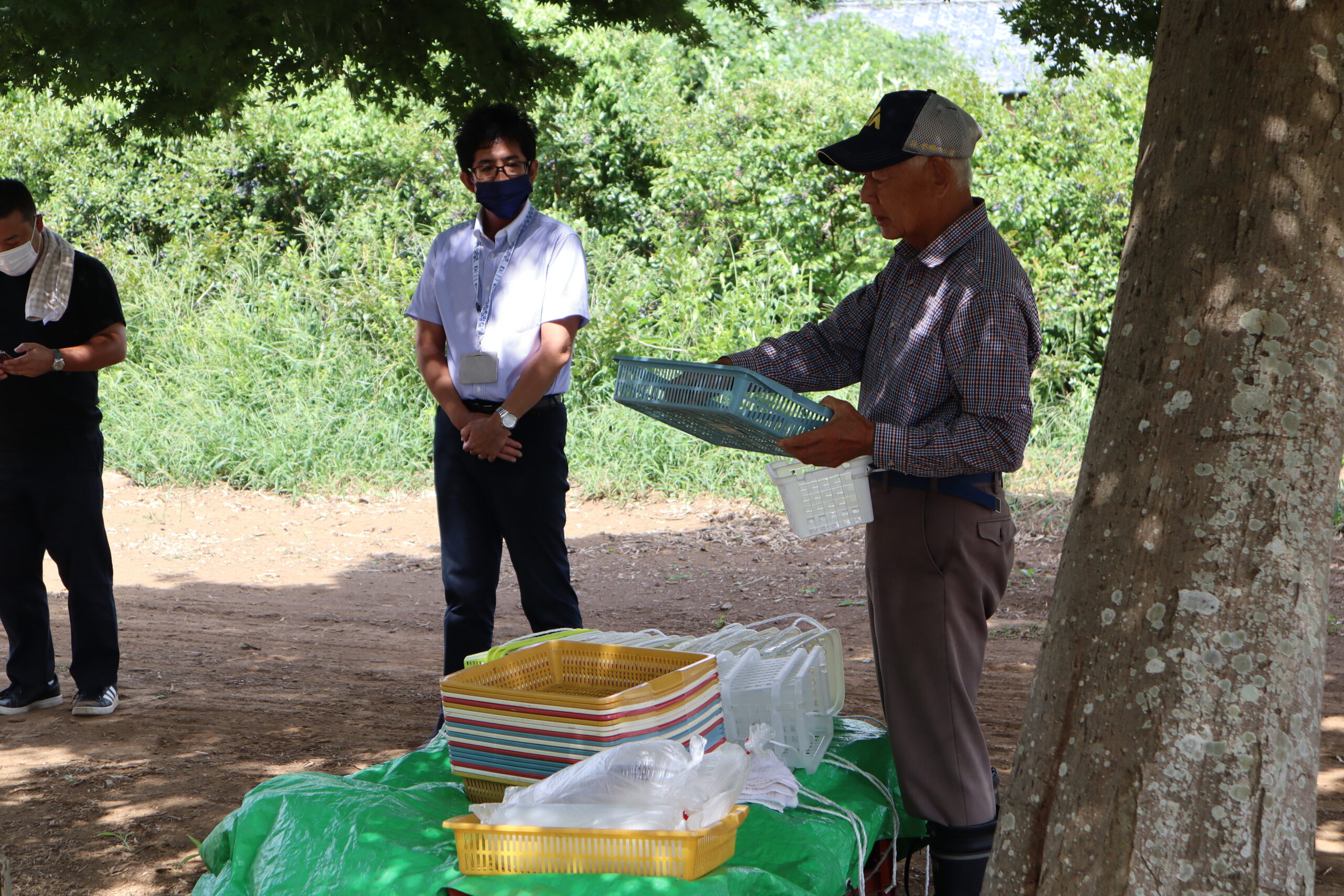 これまでに3回、かすみがうら市の「坂農苑」において、ブルーベリーの収穫体験が行われ、悪天候によるトラブルもありながら約90Kgを収穫しました。