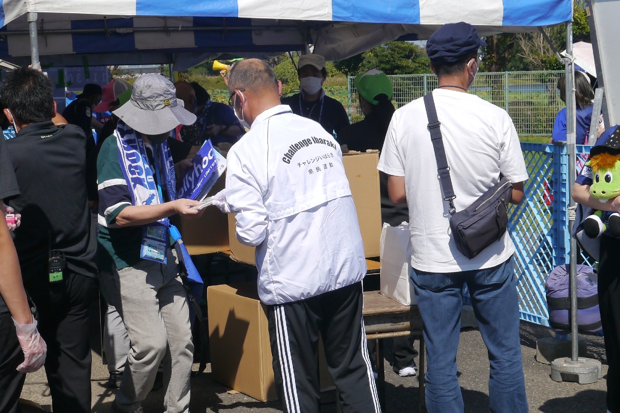 10/2(日)水戸市のケーズデンキスタジアムで開催された水戸ホーリーホック対ジェフユナイテッド千葉の試合において、主催者の(公社)茨城県青少年育成協会、水戸市青少年育成推進会議と「あいさつ・声かけ運動」街頭キャンペーンを実施しました。