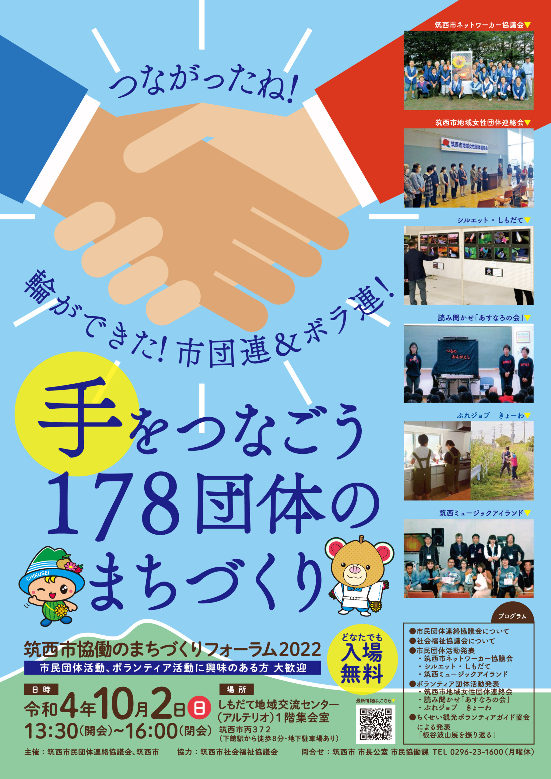 筑西市民団体連絡協議会と筑西市(市民協働課)の共催イベントである「筑西市協働のまちづくりフォーラム2022」が3年ぶりに開催され、同協議会の加盟団体である筑西市ネットワーカー協議会も団体として参加し、日頃の活動内容についての発表を行いました。