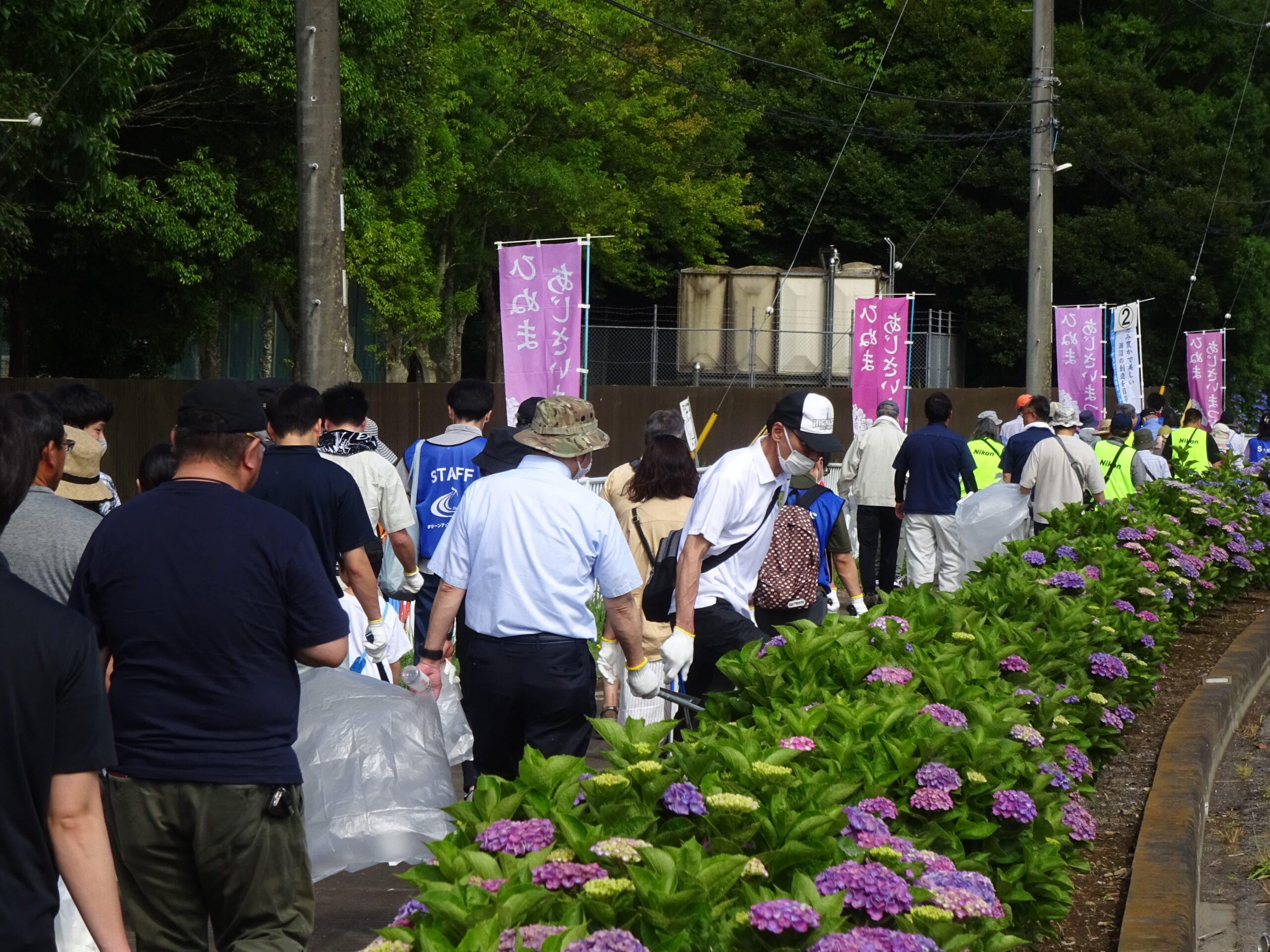梅雨の時期にもかかわらず、お天気に恵まれての開催でした。参加者の皆さんが協力しながら生活に身近なごみを拾いました。