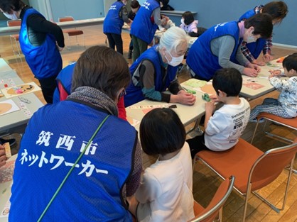 筑西市ネットワーカー協議会が、しもだて地域交流センターアルテリオ集会室で、市内の子どもたちとその家族を対象に折り紙教室を開催しました。