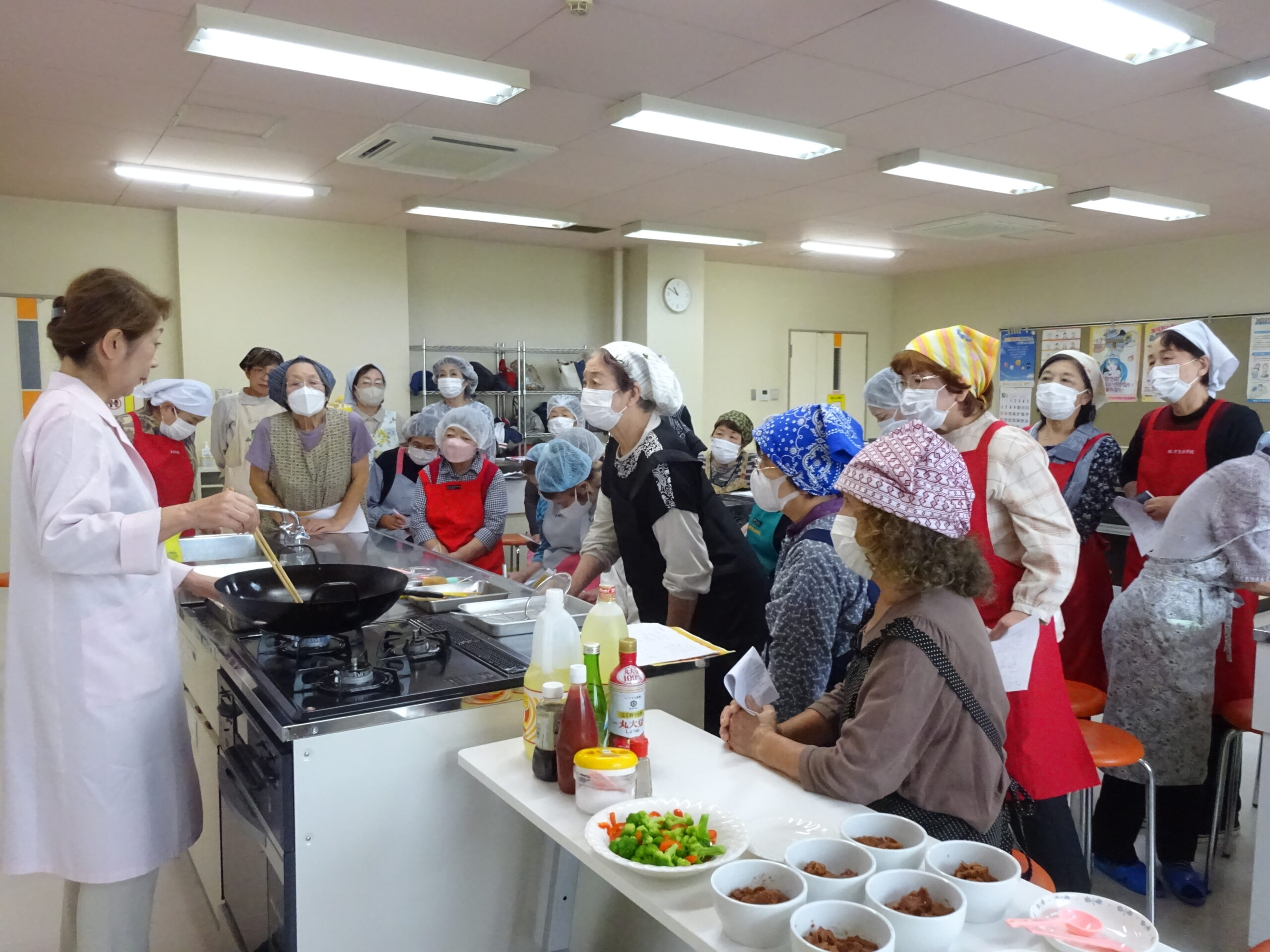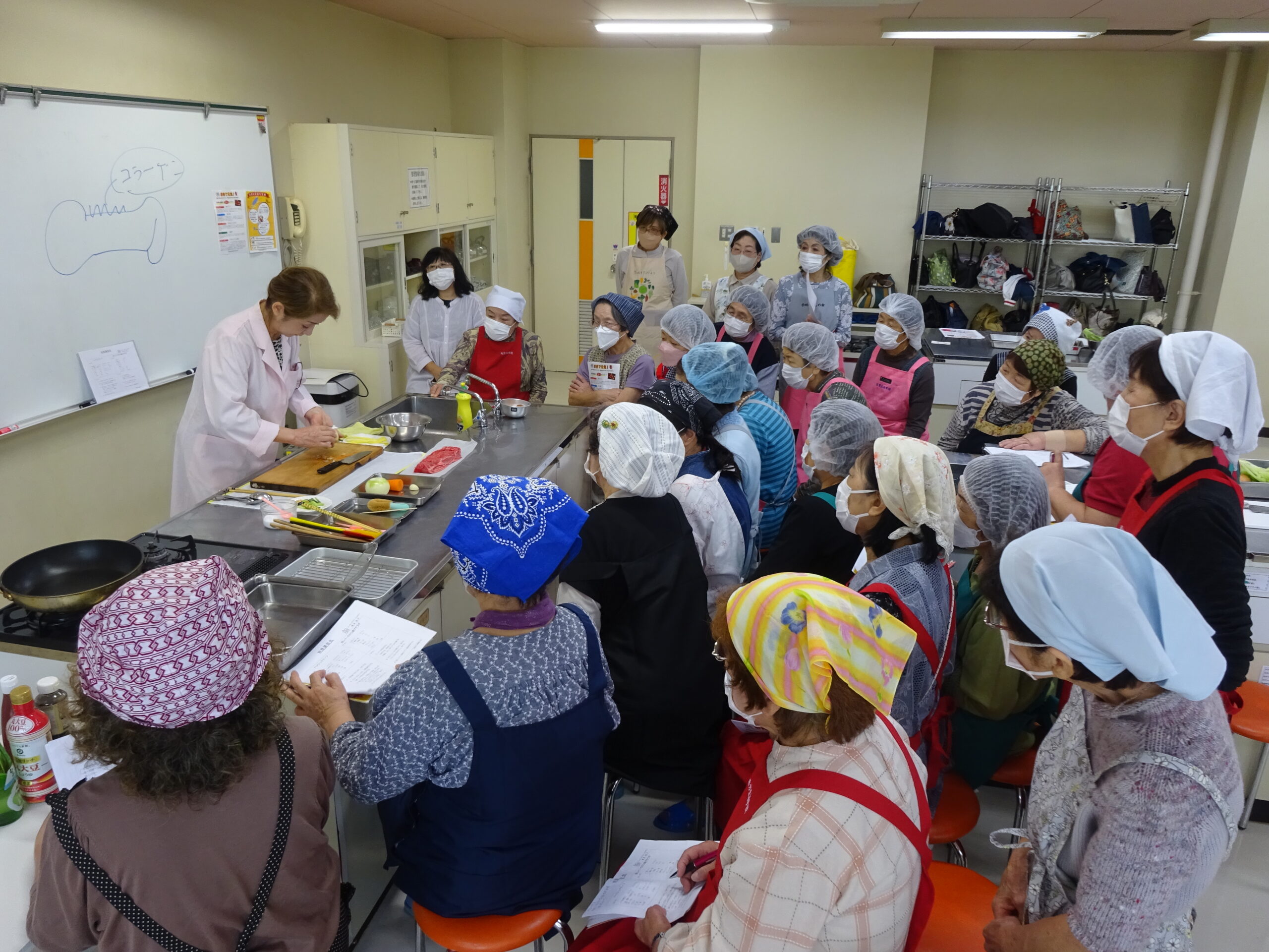 参加者の皆さんは、調理のポイントや栄養価の話を熱心にメモに取っていました。