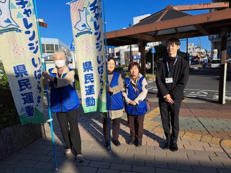 11月の「あいさつ・声かけ運動」強調月間にあわせて(公社)茨城県青少年育成協会、青少年育成市町村民会議、チャレンジいばらき県民運動の主催で、11月1日(金)土浦駅、11月6日(水)日立駅、11月8日(金)下館駅で「あいさつ・声かけ運動」街頭キャンペーンを実施しました。