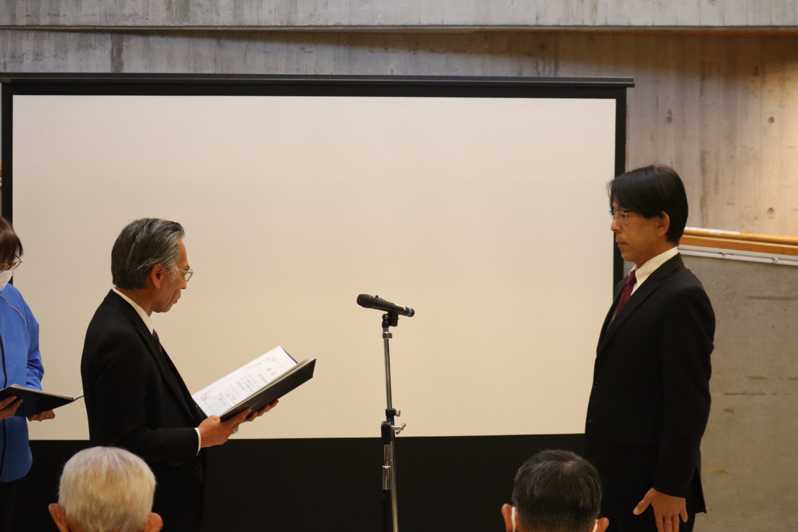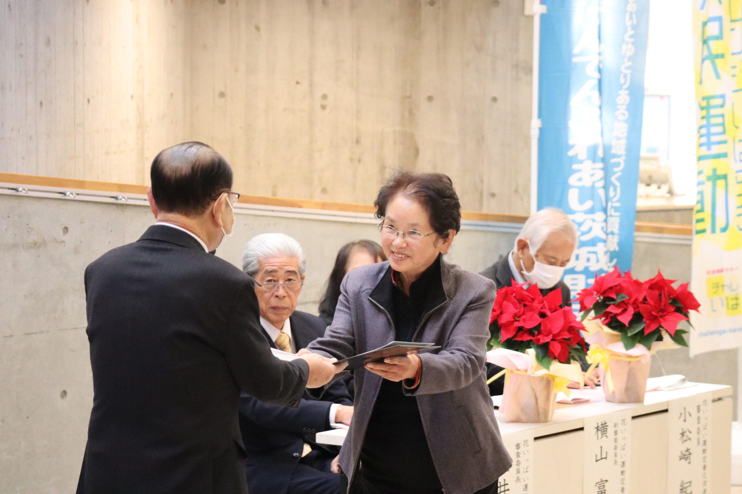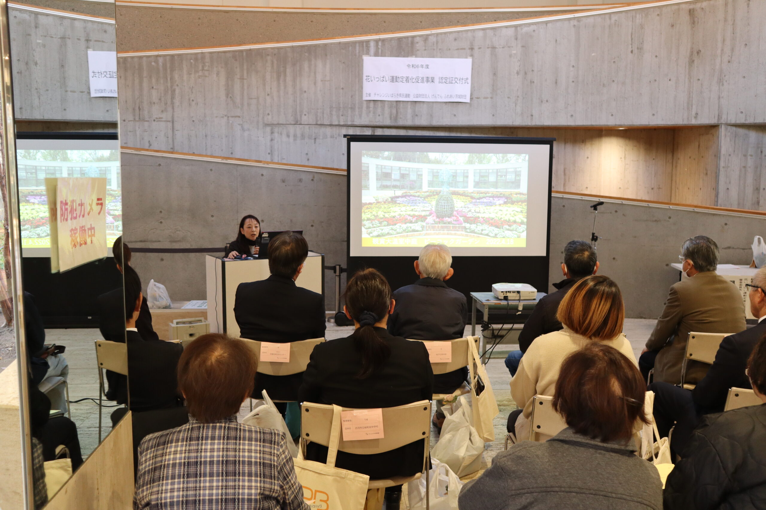 認定証交付式では、今年度応募いただき、選考を通過した21の団体・学校に対し、チャレンジいばらき県民運動 理事長 阿部真也と公益財団法人 げんでんふれあい茨城財団 事務局長 近畑英之より認定証を交付するとともに、目録及び花壇に設置する看板を贈呈いたしました。