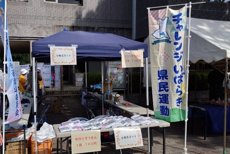 「小美玉市福祉にっこりまつり」に参加し、小美玉ネットおよび小美玉市男女共同参画推進委員会の共同ブースにおいて、来訪者に対して小美玉ネットおよびチャレンジいばらき県民運動のPR活動を積極的に行いました。その結果、来月の清掃活動への参加者を呼び込むことが出来ました。また、各家庭で眠っていたタオルを活用し、会員が手作りした雑巾を販売しました。