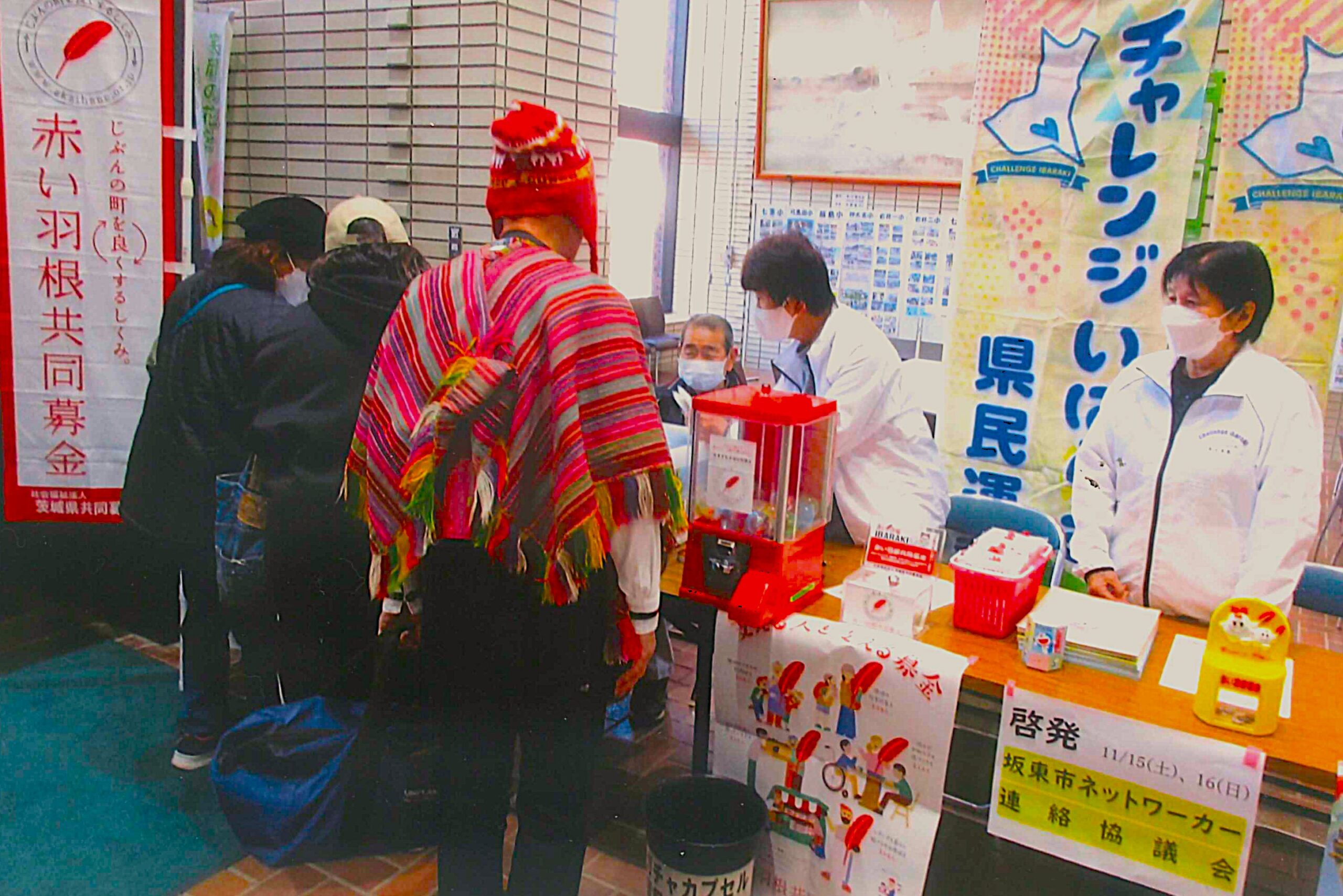 坂東岩井公民館で開催された、「岩井公民館まつり」に参加し、赤い羽根募金活動を行いました。約1,100人が訪れ賑わいました。