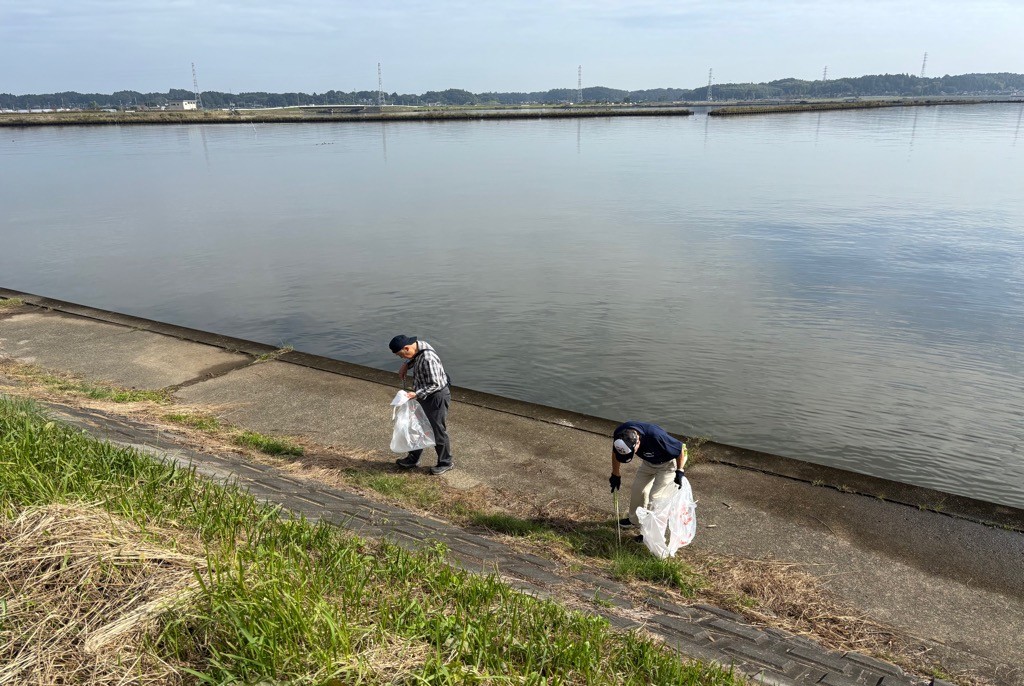 茨城町涸沼自然公園で実施された「令和7年度「ひぬま流域クリーン作戦」に参加し、清掃活動を行いました。