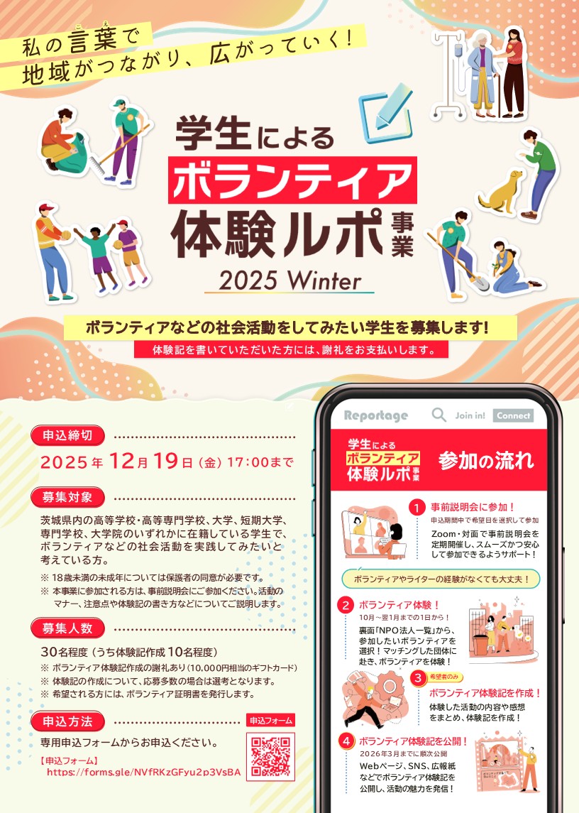 令和7年度 学生によるボランティア体験ルポ事業募集要項