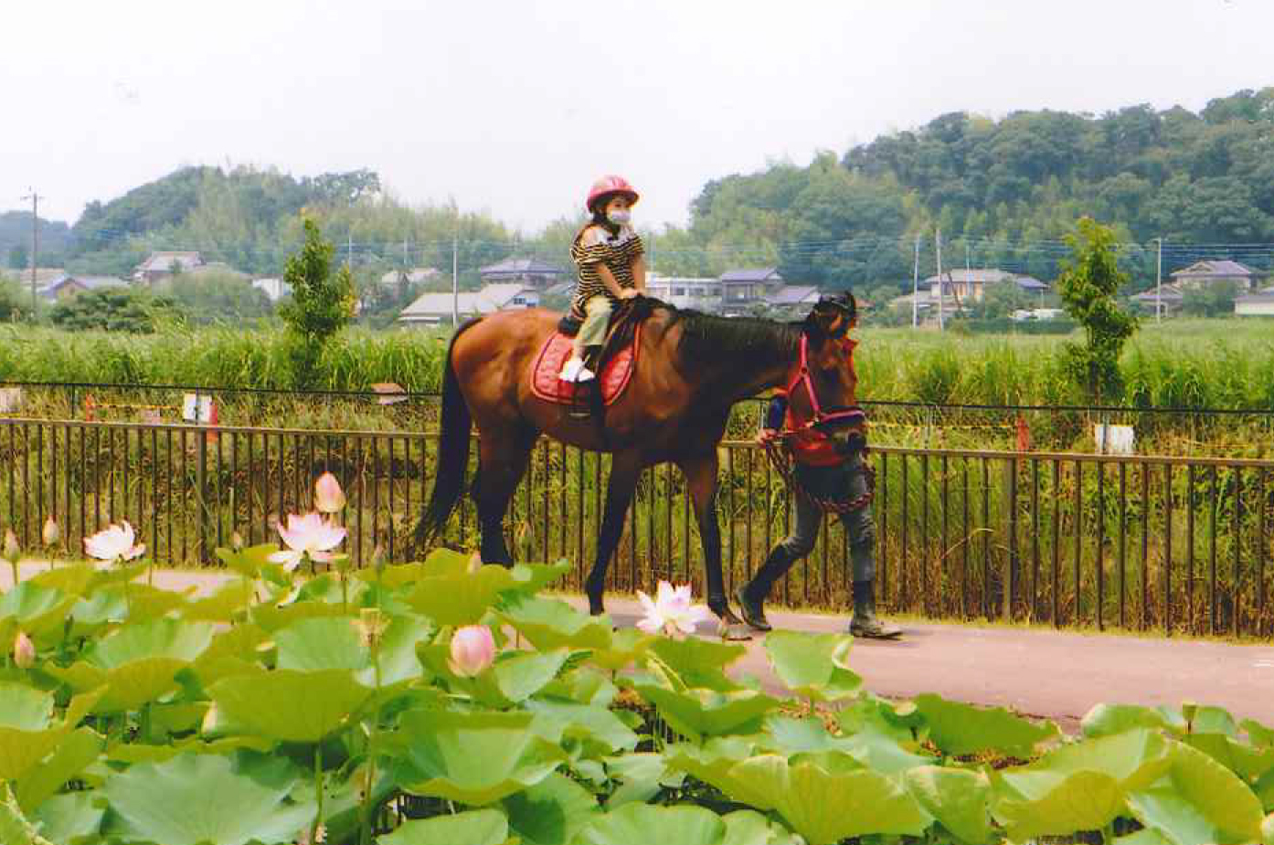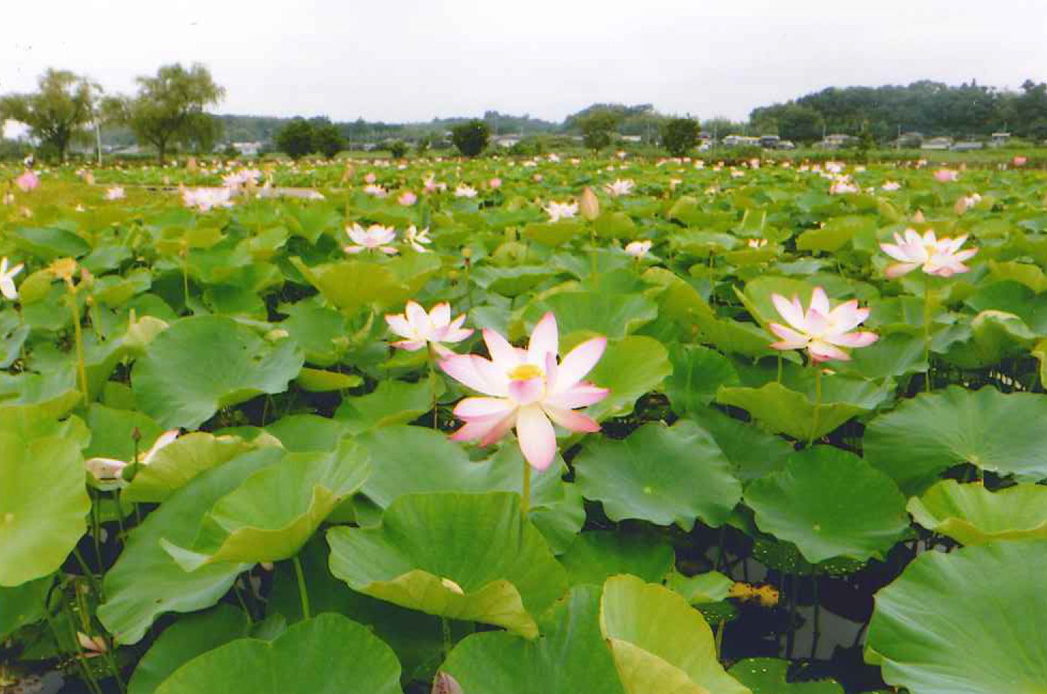 平成13年に整備された公園に育成していた古代ハスを移植。園内には、燕子花、姫睡蓮などの水生植物や桜、紫陽花など季節毎に咲く花もあり、6月下旬からは池一面にピンク色の大輪古代ハスが咲き広がります。