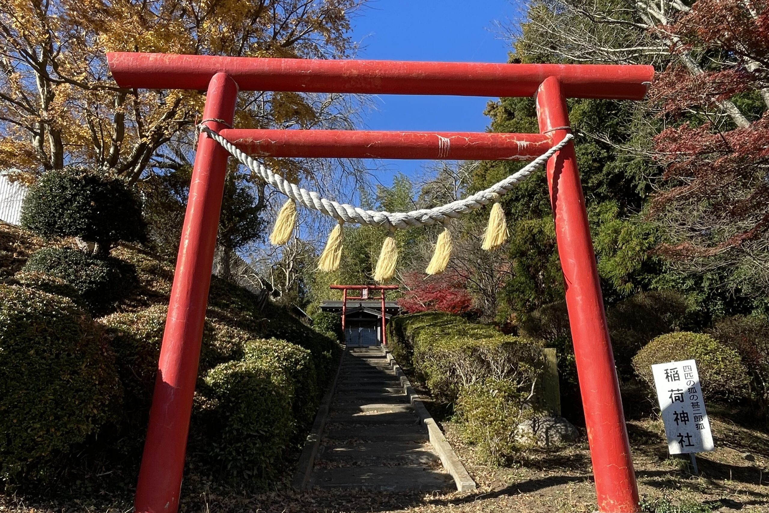 トップページ > チャレンジいばらき県民運動の取り組み > ふるさと自慢 > 四匹の兄弟狐の民話 其の弐「甚二郎稲荷」 ふるさと自慢 Tweet 瓜連には、県内で人々の暮らしを向上させた兄弟狐の民話があります。人間を困らせる狐がいる中で、四匹の兄弟狐が人間に協力して地域を活性化させたというものです。 四兄弟の二男 甚二郎は、野を守り、田畑を開墾に力を貸し、灌水や稲作などを教え神通力を発揮して五穀を豊かに実らせたと伝えられています。 その二男を祀っている甚二郎稲荷神社は、階段を上ったところにあり、地域の田畑を見渡せます。 アクセス Information 令和6年度登録 推薦者:那珂市ネットワーカー連絡協議会 県民活動推進員 川上 正廣